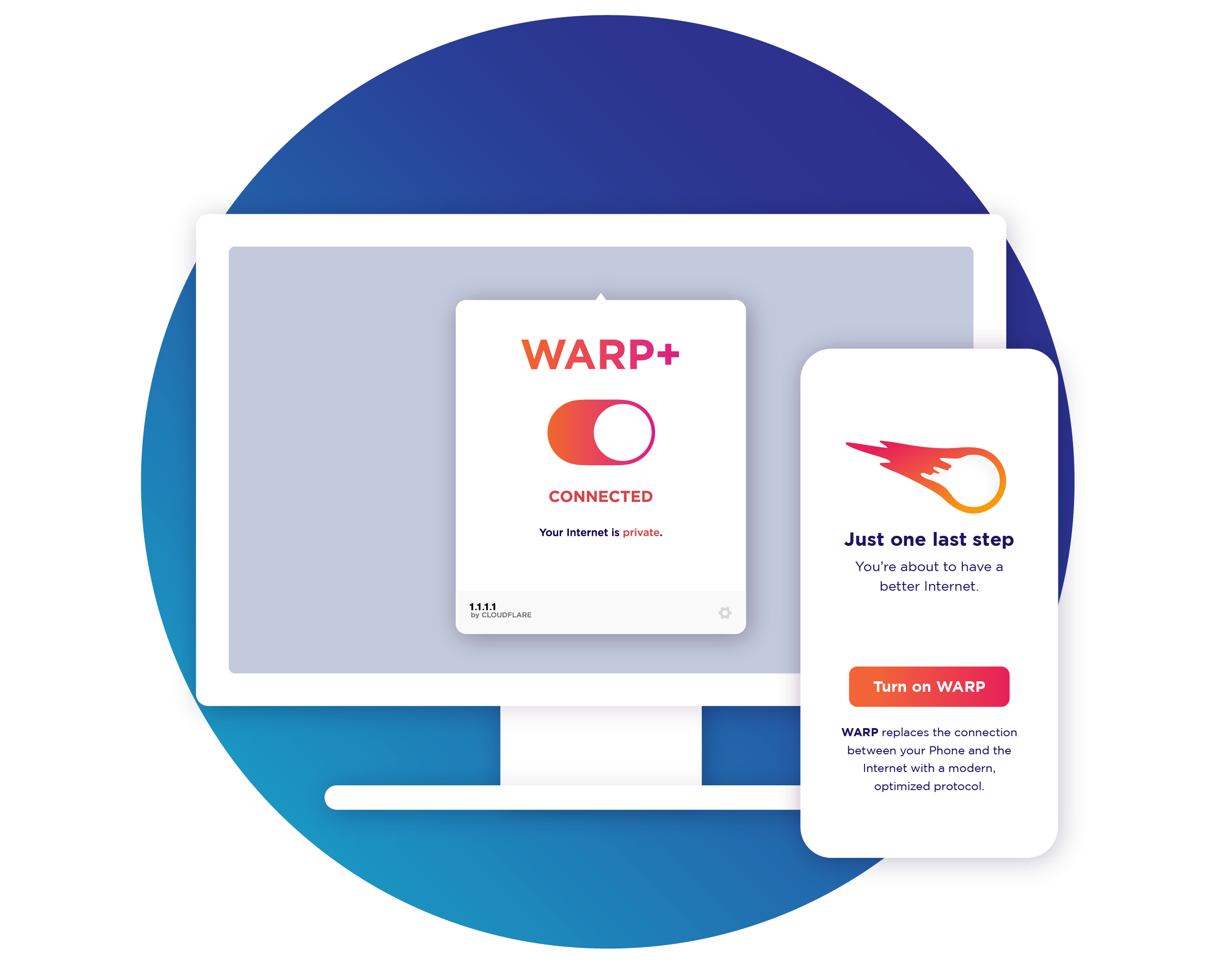1.1.1.1 із WARP замінює з’єднання між вашим пристроєм та Інтернетом на сучасний оптимізований протокол.